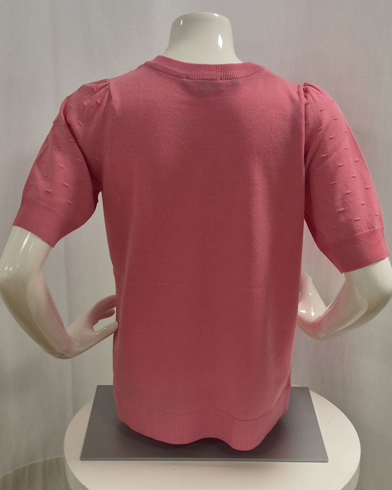 Mysig pullover med kort ärm att ha under en kavaj eller kofta. Men den är lika fin att ha som den är med liten nätt mudd både i ärmslut och nertill.