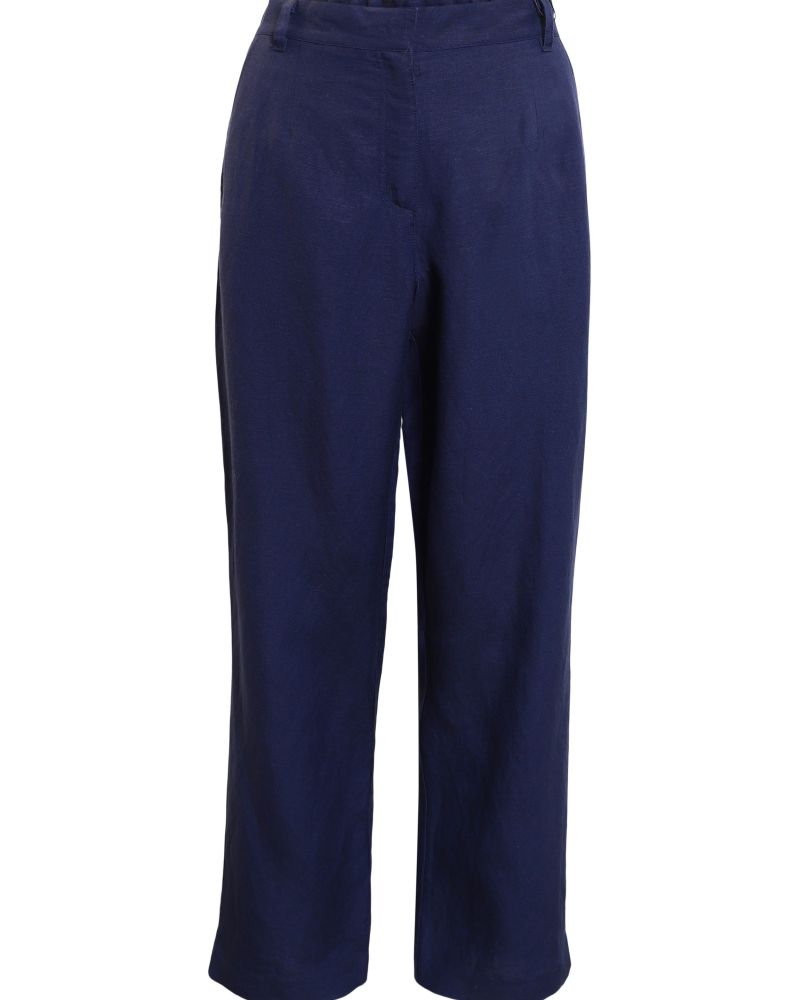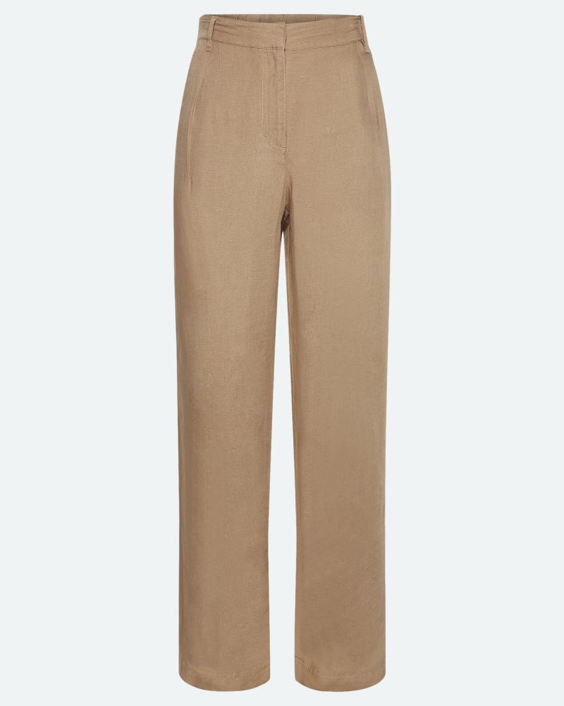 Byxor i linne och viskos från Brandtex. Dessa byxor är med fast resår på baksidan. Byxorna stängs på framsidan med krokar och dragkedja. Det finns böjda fickor i sidan. Det finns bra bredd i byxbenen, och det ger en riktigt fin look. Finns även i sand färg.