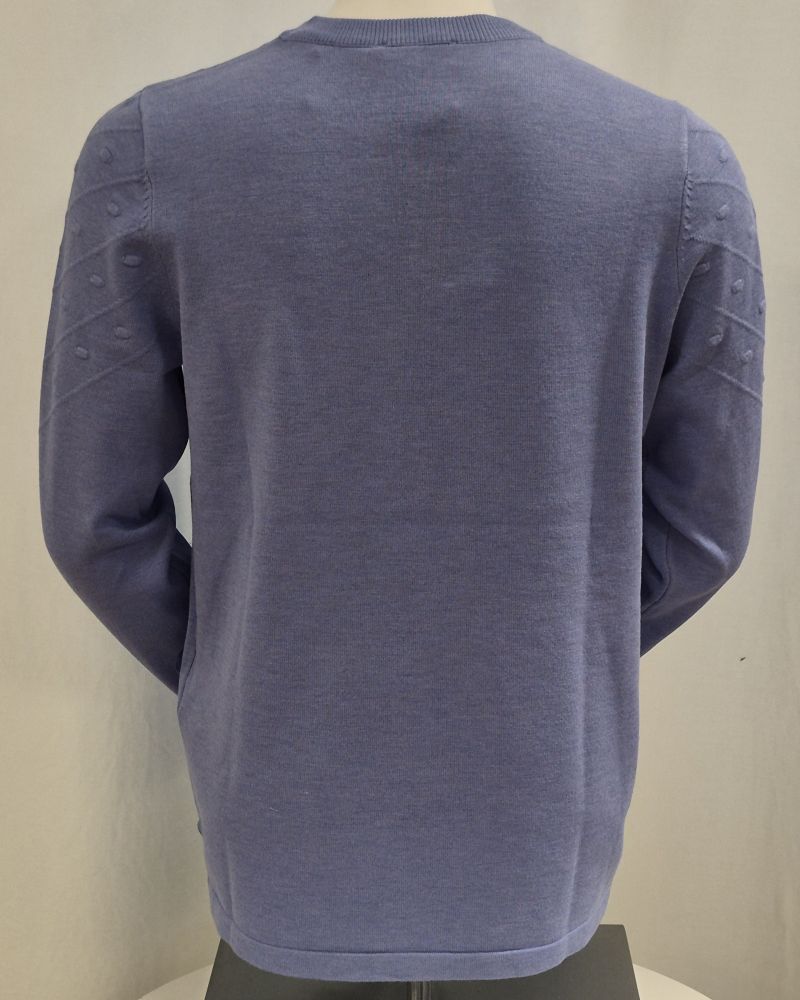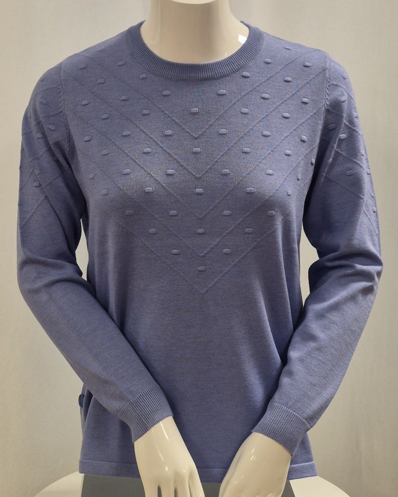 Pullover med fin mönsterstickning som passar att användas både till vardags och till fest. Rak kant nertill med fina knappar i sidorna.