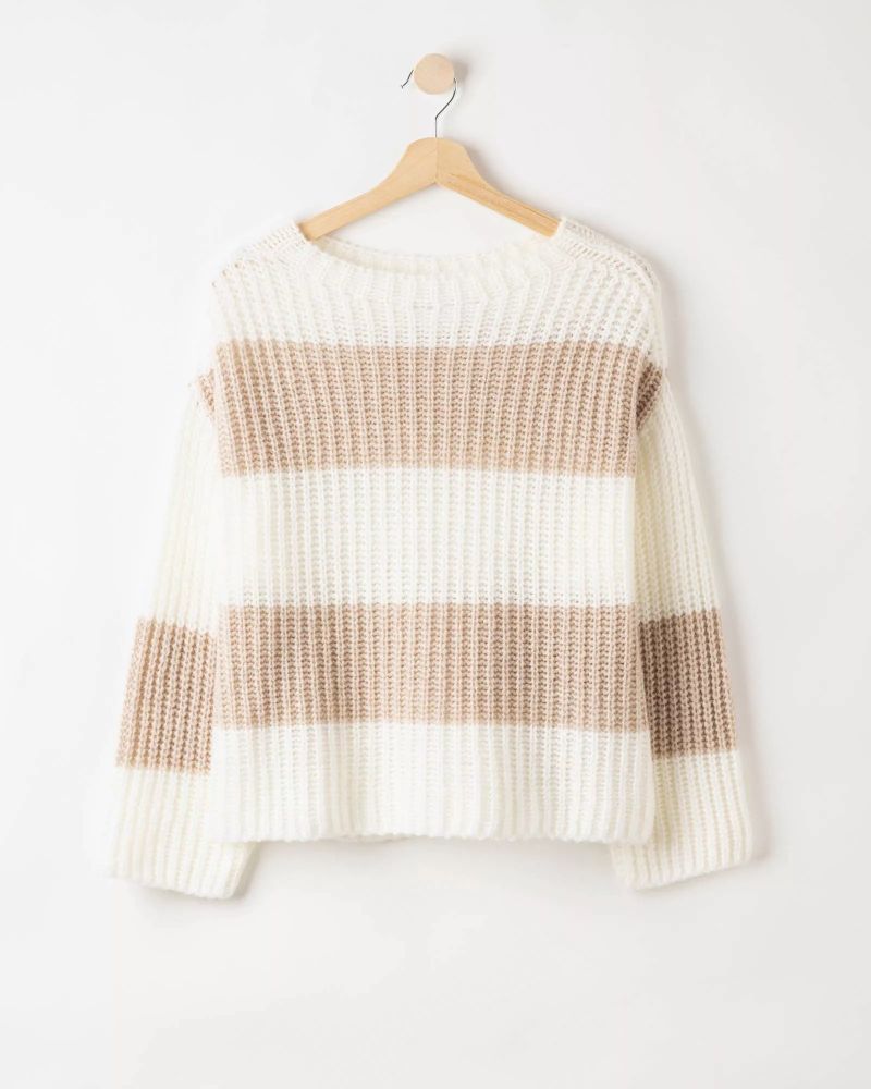 Senaste årens succetröja från Holebrook i ny läcker rand. Mycket mjuk och luftig tröja som är kortare i livet och ärmar. Nedhasad axel och raka ärmar som knappt når till handleden. Normal i passformen och vill du ha den väldigt löst sittande går du upp en storlek. ÖKO-TEX® certifierat garn.