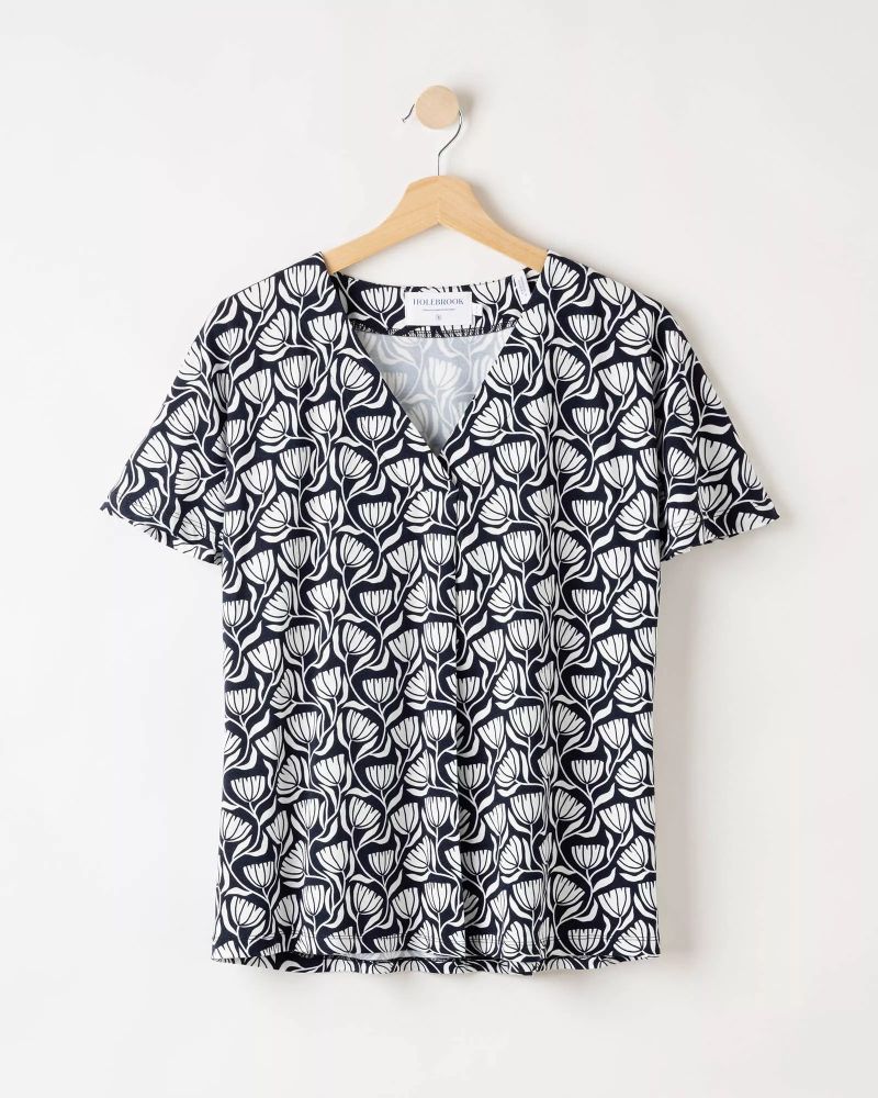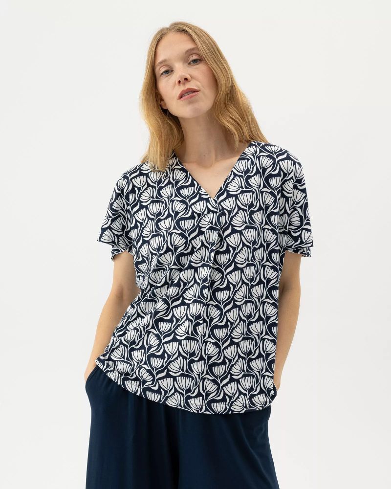 V-ringad topp i en bekväm, mjuk och följsam kvalitet som ger ett fint fall. Avslappnad passform och vid holkärm. Matcha med Ellen Skort för en komplett outfit. Tyget är certifierat enligt Öko-Tex®. Hållbart producerad i Europa.