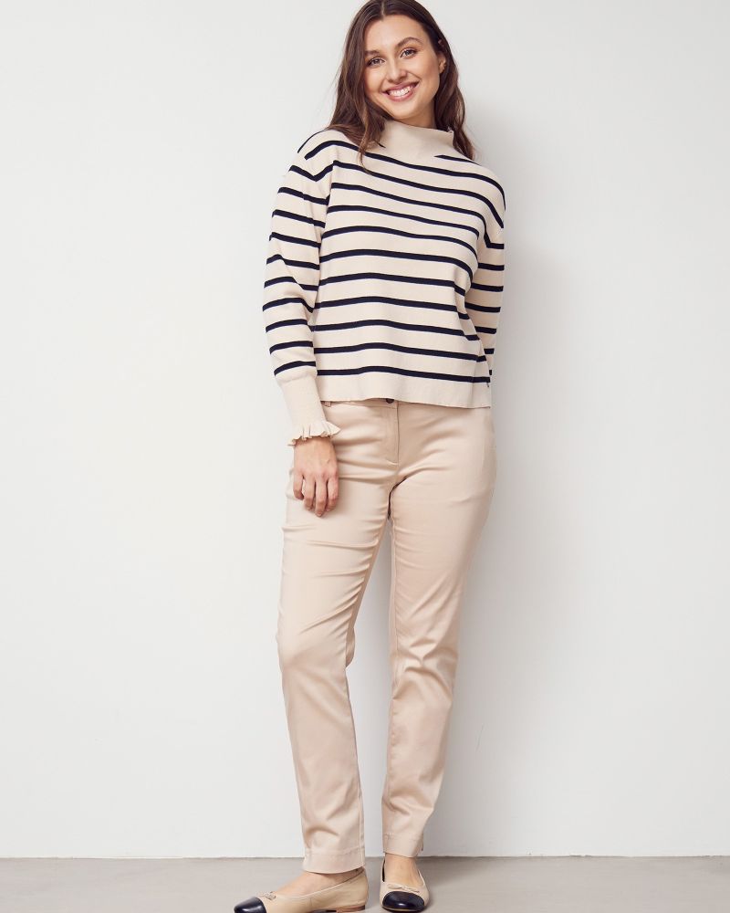 Här är våra klassiska byxor, Isay Classic Pant. De har en mediumhög midja och en tidlös passform som sitter tätt runt höfterna, är något lösare vid benen och smalnar av mot ankeln. Isay Classic Pant har en elegant och klassisk design och är bekväma att bära hela dagen. De är tillverkade främst av bomull, polyester och elastan, vilket ger dig utmärkt rörelsefrihet och säkerställer att de sitter bra på kroppen. Byxorna har ett fast midjeband som stängs med två knappar, bälteshällor, fickor och kommer i full längd. Finns även i navy och svart.