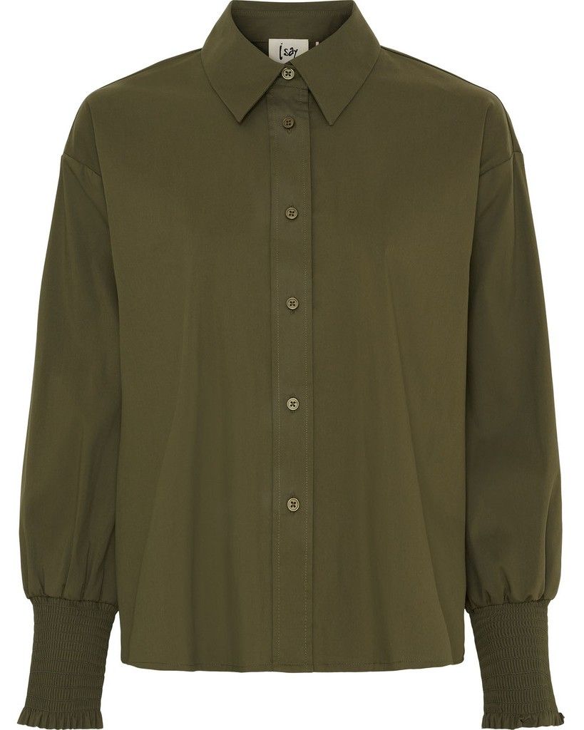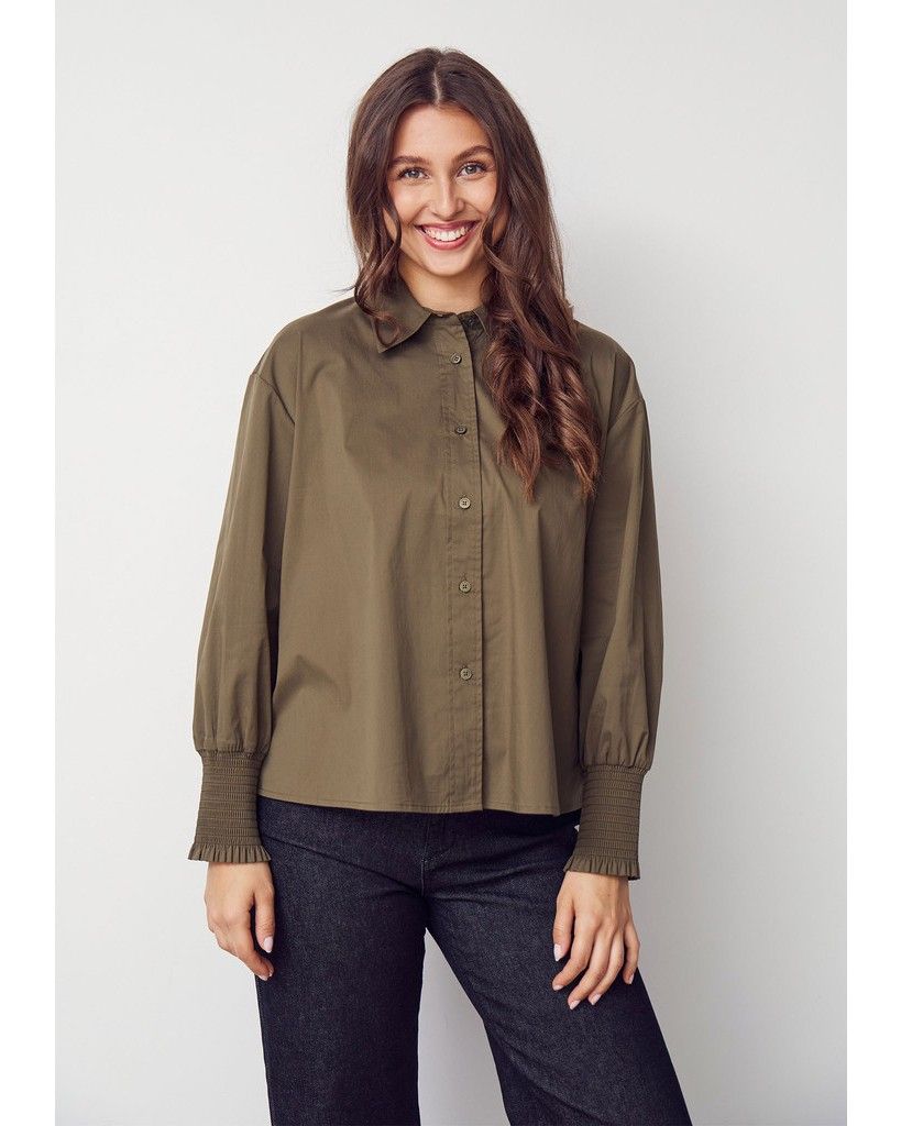 De breda manschetterna med smock skapar en elegant volym i ärmarna, vilket ger skjortan en feminin twist. Den mjuka bomullsblandningen med stretch känns bekväm mot huden och behåller sin form vackert hela dagen – oavsett om du är på ett möte, på språng eller njuter av en lugn ledig dag.