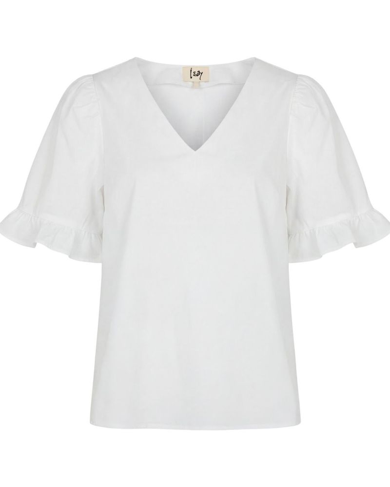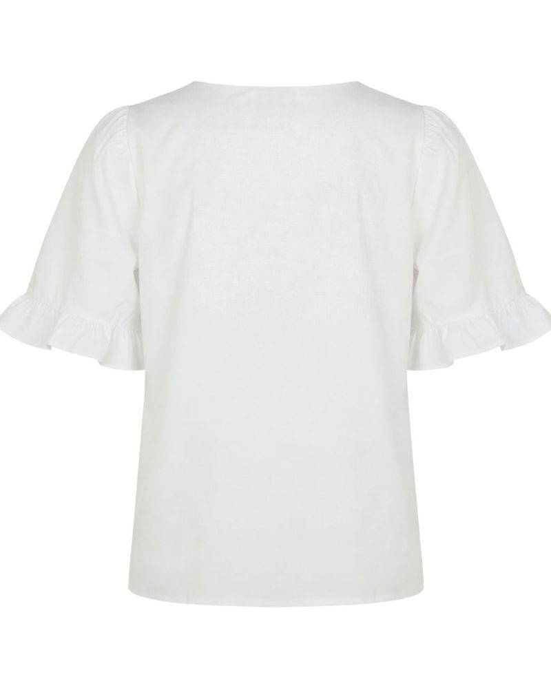 Sigga Fluounce Blouse är en av de blusar som helt enkelt höjer en outfit. Det kan se enkelt ut vid första anblicken – men ärmarna med volang trim ger bara den extra detalj som gör det intressant.