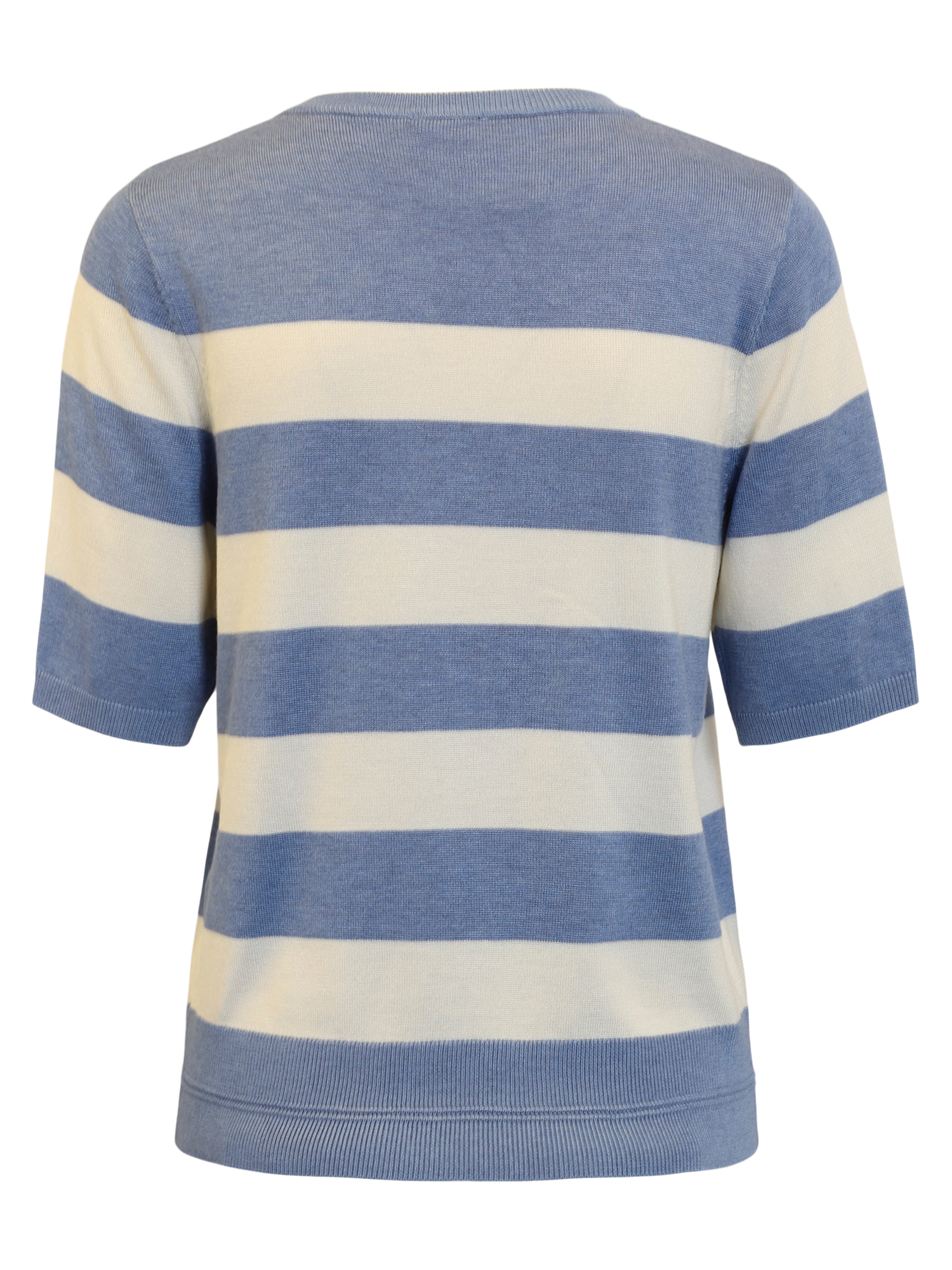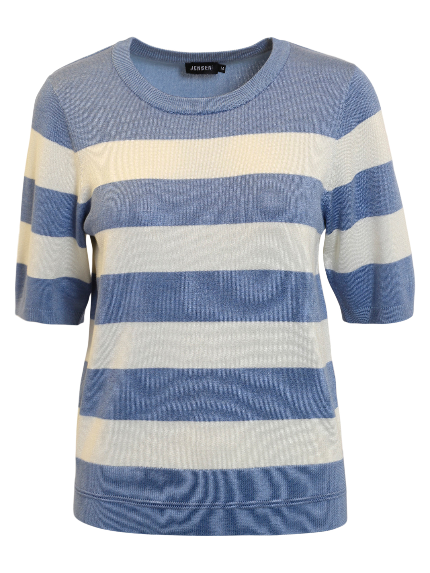 Kortärmad stickad tröja från Jensen. Snyggt breda ränder med fin mudd nertill. Normal i storlek.