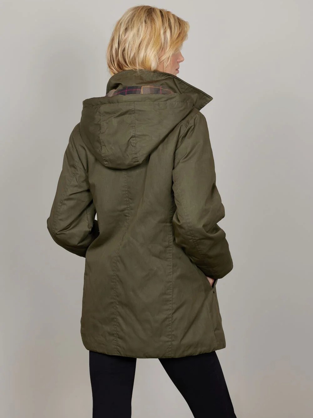 En elegant och praktisk jacka tillverkad i ett slitstarkt bomullsblandat tyg med en vaxad yta som ger vattenavvisande egenskaper och ett modernt, lätt robust utseende. Mauda är designad med fokus på detaljer: en avtagbar huva ger flexibilitet, medan den klassiska manchesterkragen och det charmiga rutiga fodret tillför en stilfullt traditionell känsla.