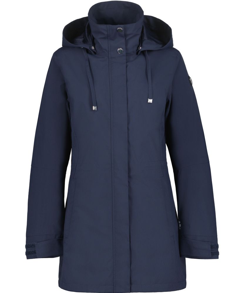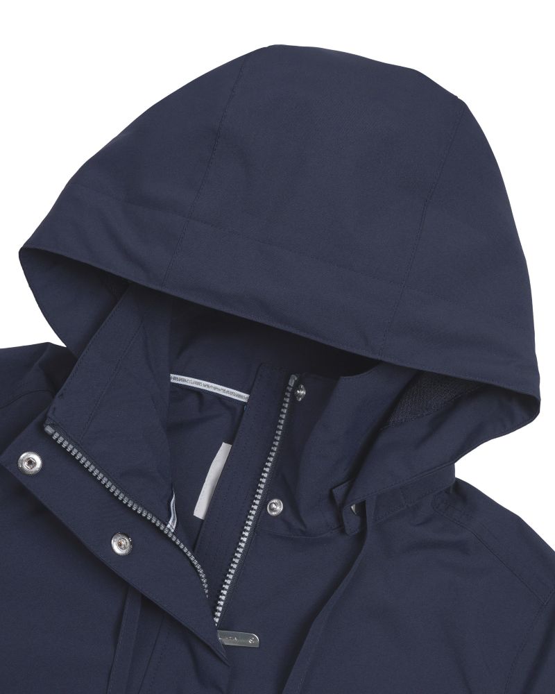 Populär allvädersjacka som funnits under några säsonger och återkommer med någon ändring i detalj varje säsong, den här har tre knappar bak som kan öppnas upp för bättre vidd. Den här är i plussize vilket innebär att det är generös passform. Jackan är tunn med dragsko i midjan, dragkedja samt vindslå med knappar som håller vind ute och en avtagbar huva. Materialet ger utmärkt skydd mot vind och vatten med tålighet på 5 000 mm. Material 100% Polyester.