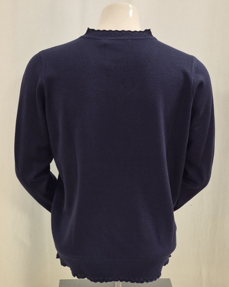 Skön och mjuk pullover som dessutom är snygg! Denna tröja har V ringad hals med söt spets i både hals , ärmslut och mudd. Passar utmärkt till ett par snyggbyxor eller varför inte till ett par jeans.