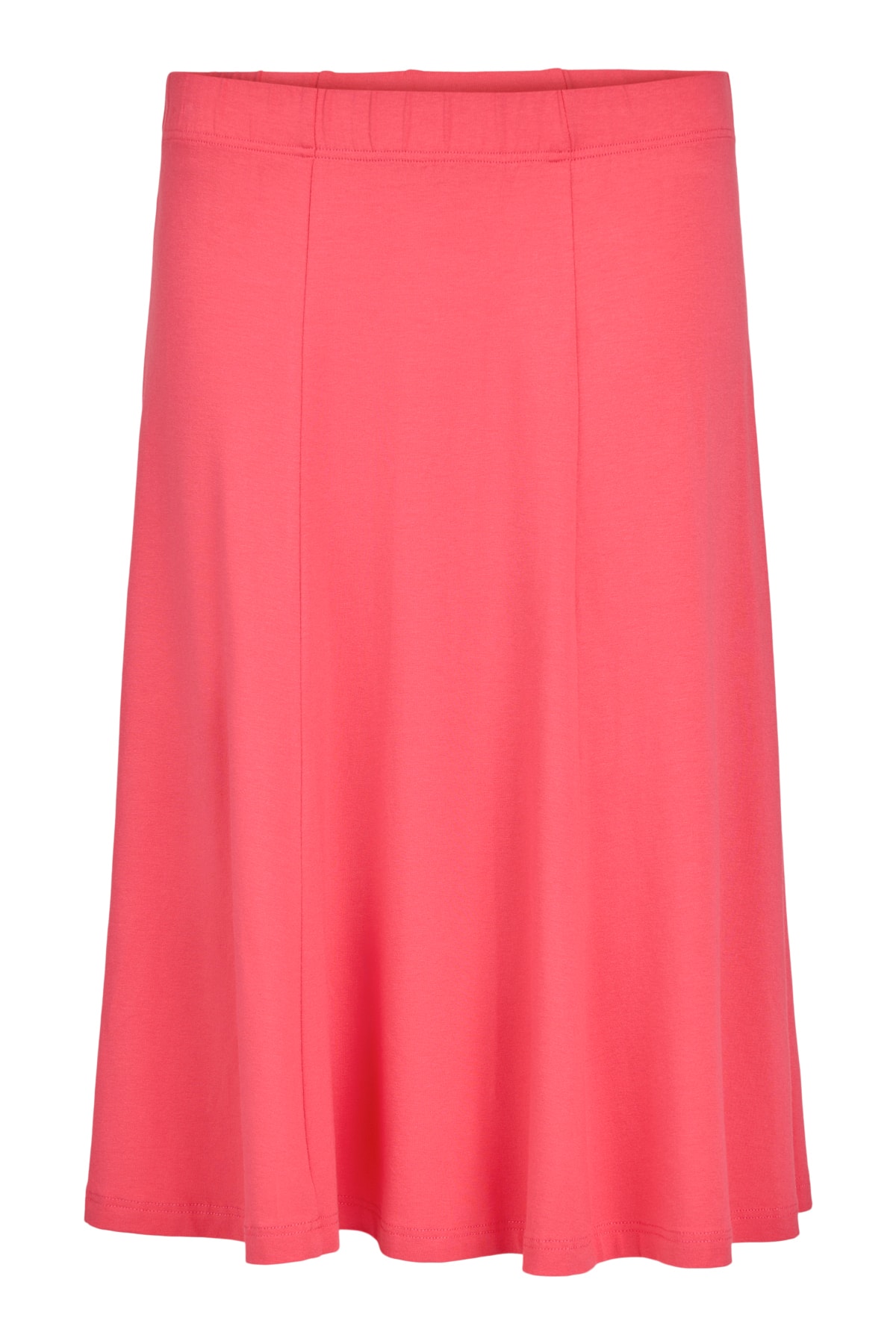 Härligt mjuk kjol som ger ett fint fall då den är lite klockad nertill. En väldigt populär A-modell i mjukt tyg och resår i midjan. Kombinera med liknande överdelar som finns i vår fysiska butik.