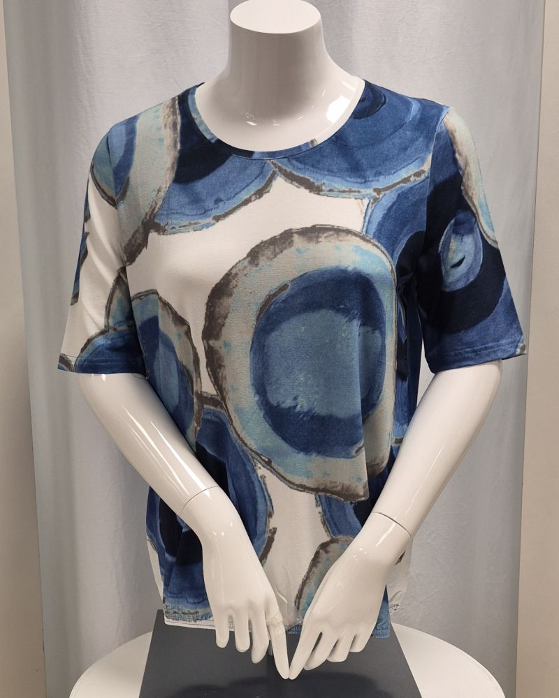 Mjuk och snygg topp i färgerna offwhite,blå och sand. Toppen är lika snygg till ett par sandfärgade byxor som till ett par jeans eller varför inte till en kjol.